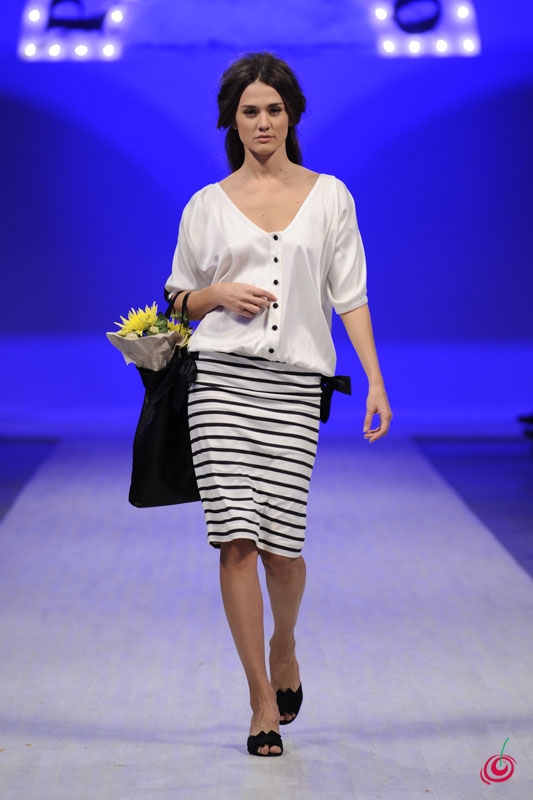 Вторым дизайнером, который представил свою коллекцию в этот день, стала Виктория Гресь. В ее коллекции много уже ставших популярными принтов, таких как горох, морские полоски, которые были дополнены необычными деталями в желтой цветовой гамме - шарфы, цветы, шляпы, браслеты и др., использованные в этом цвете.