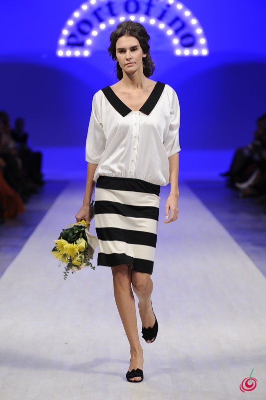 The second designer who represented its collection this day was VICTORIA GRES. There are many popular prints at this collections like polka dots, navy theme, which were supplemented by unusual details in yellow - flowers, scarves, hats, bracelets, etc. that are all used at this color.