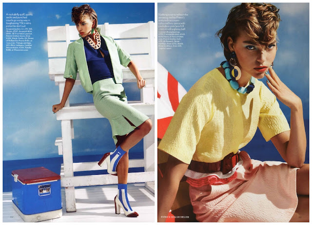 First of all I want to share with you pictures of an amazing fotoshoots of Arizona Muse for Vogue UK February 2012, named "Little Miss Sunshine". These pictures are really shiny, colorful and so pretty in their 60s' style!